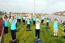 Kocatepe Gençlik Spor Kulübü üyeleri, 45 milyon liraya ıslah edilerek etrafına sosyal donatı alanları yapılan Akarçay Rekreasyon Alanı'nda step ve aerobik yaparak stres attı. Daha önce kapalı spor salonunda yaptıkları bu etkinliğin kendileri için büyük bir fırsat olduğunu dile getiren bayanlar, etkinliğe Belediye Başkanı Burhanettin Çoban'ı da davet etti. Kulüp üyeleri, projeyi kente kazandıran Çoban'a teşekkür etti.