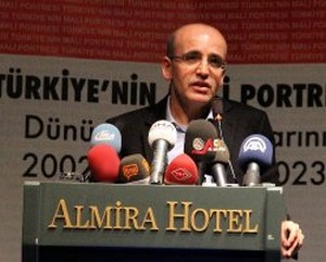 Bakan Şimşek, Bursa Organize Sanayi Bölgeleri (OSB) Sanayici ve İşadamları Dernekleri Platformu tarafından Almira Otel'de düzenlenen 'Türkiye'nin Mali Portresi'nin Dünü-Bugünü-Yarını' konulu toplantıya katıldı.