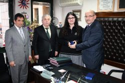 Mustafa Bilici, ziyaretin anısına Betül Göknil ve okul müdürü Burhan Cankatar’a kalem hediye etti.