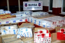 Bursa'da gümrük kaçağı 24 bin paket sigara ile 14 bin 440 poşet kahve ele geçirildi.