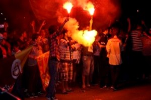 Spor Toto Süper Lig'in bitimine iki hafta kala şampiyonluğunu ilan eden Galatasaray, sarı-kırmızılı taraftarları sokağa döktü. Bursa'da bayraklarıyla birlikte sokaklara çıkan Galatasaray taraftarları büyük sevinç yaşadı. Bursasporlu taraftarların da sokağa çıkarak tepki göstermesi nedeniyle gergin anlar yaşandı.