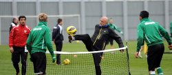Teknik direktör Hikmet Karaman nezaretinde gerçekleşen antrenman ısınma hareketleriyle başladı. Futbolcular daha sonra antrenmanı ayak tenisi oynayarak tamamladı.