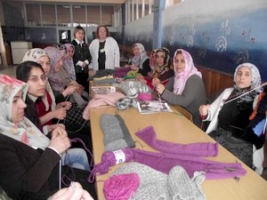 Gemlik Halk Eğitimi Merkezi Müdürlüğü ve İş-Kur Gemlik Şubesi İşbirliği'nde açılan ‘Şiş Örücülüğü’ kursuna devam eden Vanlılar, hem örgü öğreniyor, hem de aldıkları günlük 15 TL ücretle aile bütçelerine katkıda bulunuyor.