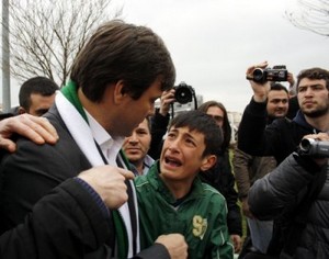 Bursaspor'daki görevinden istifa eden Ertuğrul Sağlam, tesislerin önünde toplanan taraftarların yanına giderek helalleşti. "Hakkınızı helal edin" diyen Sağlam'a taraftarlar gitmemesi için adeta yalvardı.