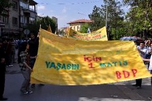 İkinci miting ise, Odunpazarı Meydanı’nda düzenlendi. DİSK, KESK, BDP, Öğrenci Kollektifleri, Emek Partisi ve diğer sol grupların katıldığı etkinlikte 1 Mayıs kutlandı. BDP’li grup ‘Öcalan’a Özgürlük, Kürtlere Statü’ yazılı pankartlar taşıdı. BDP üyelerinin Hamamyolu’ndan geçişi sırasında bir grup HEPAR üyesi protesto etti. Kısa süreli arbedenin yaşandığı olayda çevik kuvvet ekiplerinin araya girmesi sonucu gerginlik önlendi.