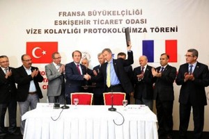 Eskişehir Ticaret Odası, üyelerine uzun süreli Schengen vizesi sağlamak amacıyla Fransa Büyükelçiliği ile Vize Kolaylığı Protokolü gerçekleştirdi. Gerçekleştirilen protokol, Fransa’nın Ankara Büyükelçisi Laurent Bili ile TOBB Yönetim Kurulu Üyesi ve Eskişehir Ticaret Odası Başkanı Harun Karacan tarafından imzalandı. Törene Eskişehir’deki kurum ve kuruluşların temsilcileri ve çok sayıda konuk katıldı. Protokol kapsamında Fransa ile ticaret yapan ve yapmak isteyen Eskişehir Ticaret Odası üyeleri uzun süreli Schengen Vizesi alabilecek. Protokol, Eskişehir’in Fransa ile ticaretinin hızlandırılması ve pazar payının artırılması açısından da önem taşıyor.