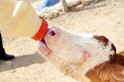 Gözleri görmeyen buzağıyı sahibi biberonla besliyor