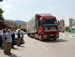 Yapılan duanın ardından yardım TIR’ları yola çıktı. TIR’ları ise İHH üyeleri uğurladı.