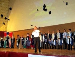 Diplomalarını alan 33 öğrenci, keplerini havaya atarak büyük sevinç yaşadı.