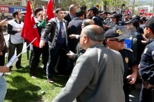 Âkil İnsanlar Ege Bölgesi heyetinin Kütahya'daki ikinci gün programında yaklaşık 300 kişi, protesto etmek için toplandıkları otelin önünde Avni Özgürel'e saldırmaya çalıştı.