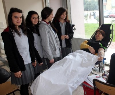 Okul Müdür Yardımcısı Nadir Al ve öğrenciler Kübra Özçoban, Nazan Koç, Betül Akın ve Fatma Özertürk koordinesinde, sosyal etkinlik dersi kapsamında düzenlenen bir günlük kan bağışında öğretmen, veliler, okul personeli ve 18 yaşından büyük öğrencilerden 28 ünite kan toplandı. Hüseyin Sungur Anadolu Lisesi’nin etkinlik salonunda, Bursa Kızılay Kan Merkezi’nden gelen ekip tarafından sağlık kontrolleri yapılan öğretmen, veli, okul personeli ve öğrenciler birer ünite kan verdi. Üç ay önce yine öğrencilerinin katkılarıyla kan bağışı düzenlediklerini ve yoğun ilgi gördüğünü ifade eden BTSO Hüseyin Sungur Anadolu Lisesi Müdür Yardımcısı Nadir Al, 9. sınıf öğrencileri Kübra Özçoban, Nazan Koç, Betül Akın ve Fatma Özertürk’ün koordinesinde, kan vermek isteyen kişileri belirlediklerini söyledi.