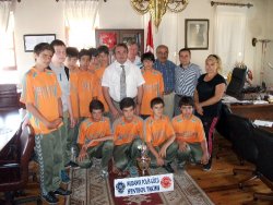 Hüsamettin Güner ve Sümbül Peksert’in antrenörlüğünde müsabakalara hazırlanan minik sporcular kupa sevincini, ilçe protokolüne yaptıkları ziyaretlerle paylaştı. Mudanya Kaymakamı Adem Öztürk’ü makamında ziyaret eden sporculara, İlçe Emniyet Müdürü Ercan Tilki’nin yanı sıra Polis Gücü Spor Kulübü Başkanı Hüseyin Bağcı ve antrenörler de eşlik etti.