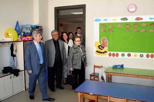 Mualla Türkün, oğlu tarafından adına yaptırılan okulda minik öğrencilerle bir araya geldi.