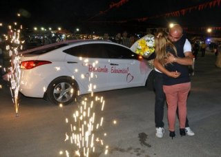 Paksoy otomobilin iki tarafına ‘Benimle Evlenir misin?’ yazısı yazdırarak kız arkadaşı Şeyma’nın çalıştığı fuar alanında bulunan standının önüne gitti. Otomobil üzerindeki yazıyı okuyan Şeyma Toptan kısa süren şaşkınlığının ardından elinde çiçeklerle kendine yaklaşan erkek arkadaşının boynuna sarıldı.