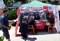 SP Bursa İl ve Mudanya İlçe Kadın Kolları'nın önderliğinde Mudanya Sahili'nde bir günlük stand açan partili bayan "Gezi deklarasyonunu" Mudanyalılara anlattı. İlçe Başkanı Saim Sakin, İl Kadın Kolları Başkanı Ayşe Güleç, İlçe Kadın Kolları Başkanı Havva Bayrak ile partili bayanların hazır bulunduğu standta deklerasyonun yanında üye kayıt ve Milli Gazete'nin de tanıtımı da gerçekleştirdi.