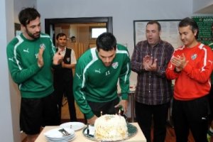 Bursaspor'un golcü oyuncusu Sebastian Pinto, 27. doğum gününü takım arkadaşlarıyla birlikte kutladı.
