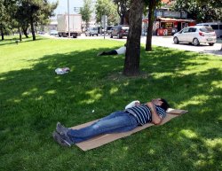 Ağaç diplerinde uyuyan insanlar ise ilginç görüntüler oluşturdu. Yakıcı güneşe rağmen çocukların parklarda oyun oynaması dikkat çekti.