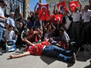 Sloganlar atıp, teneke ve düdük çalan köylüler, ‘Köyümüze termik santrali istemiyoruz, zehir solumak istemiyoruz, köyümüzden ayrılmak istemiyoruz’ şeklinde sloganlar attı.