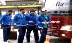 Geniş güvenlik önlemleri altında kalacağı otele gelen Trabzonspor kafilesini burada da Trabzonspor'a gönül verenler futbolcularla hatıra fotoğrafı çektirdi. Bordo Mavili-kafile maç saatine kadar kalacağı otelde kampa girdi.