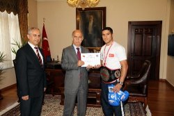 Vali Şahabettin Harput,  Milli Sporcu Hüsnü Sarı’ya başarı belgesi verdi.