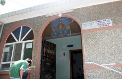 Yıldırım düşen caminin elektrik sistemi zarar gördü